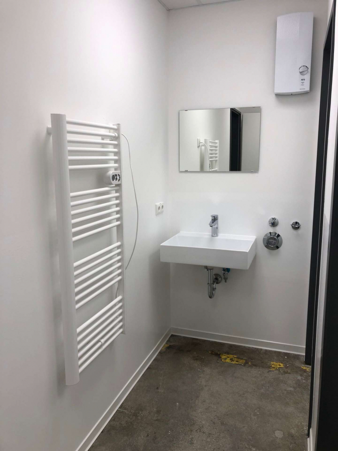 Großzügige Raumgestaltung, hohe Decken, moderne Farbgestaltung im industriellen Stil. Sanitäre Anlagen, Dusche und Abstellraum/Lager integriert. Ebenerdiger Zugang.