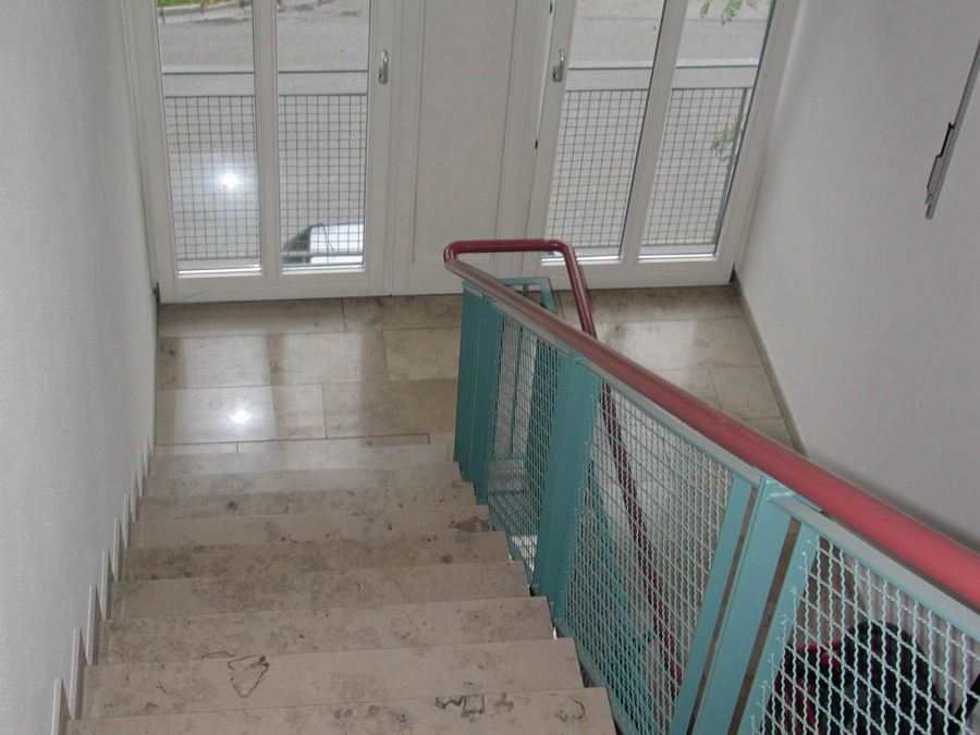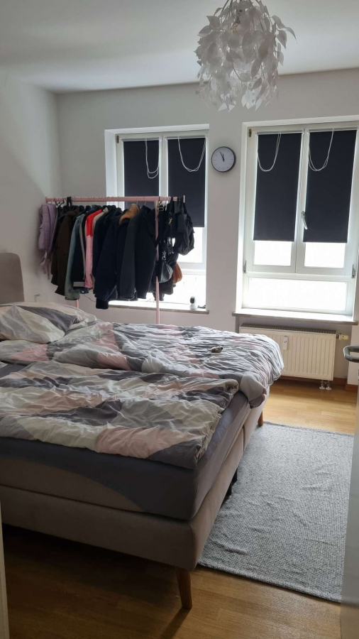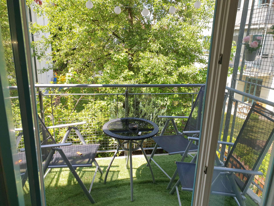 Der große Süd-West-Balkon ist vom Wohnzimmer aus Richtung Westen begehbar. Im Wohnzimmer befindet sich eine Küchenzeile, welche vom Vormieter abgelöst werden kann (Preis nach VB). Das Wohnzimmer inkl. Küche und der Flur sind mit Echtholzparkett ausgestattet. Das helle Schlafzimmer ist mit Venyl-Designboden versehen. Das Bad ist mit einer Badewanne und weißen Fliesen ausgestattet. Zur Wohnung gehört auch ein Kellerabteil. Im Treppenhaus befindet sich ein Aufzug, welcher auch das Kellergeschoss bedient. Ebenso steht den Mietern eine gemeinschaftliche Waschmaschine und ein Trockner in der Waschküche zur Verfügung. Ein eigener Waschmaschinen-Stellplatz steht im Appartement nicht zur Verfügung.